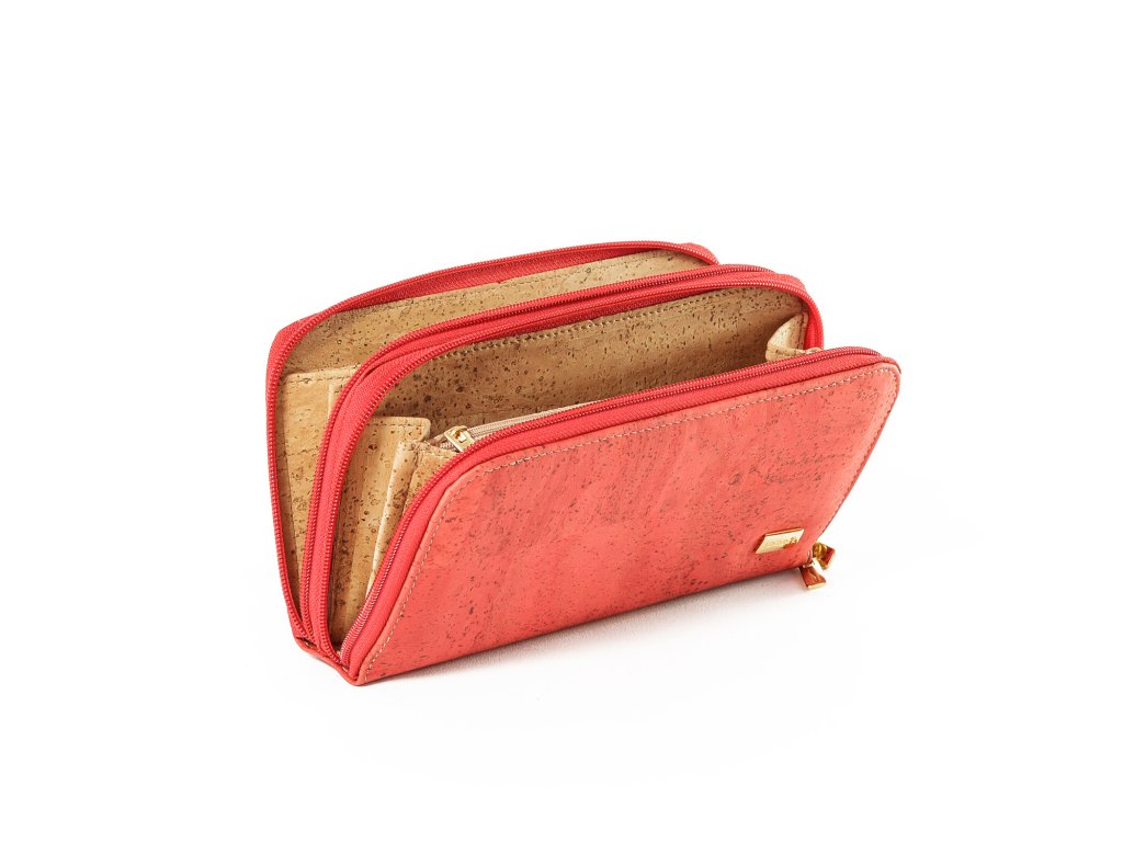Výrobok z korku ACTAHA máme k dispozícii v štyroch farbách. Peňaženka/kabelka je uzatvárateľná na zips. Vnútri má až 12 priehradiek na karty a miesto na mobil.